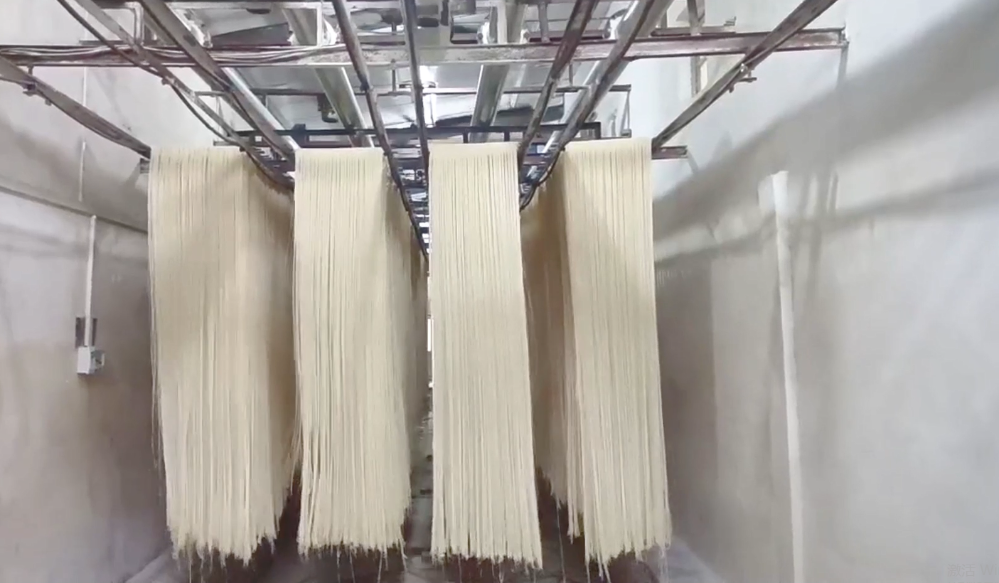 走进聊城市茌平区博平鑫兴挂面厂的生产车间,架子上挂满了正在晾晒的手工挂面,一条条垂下的面线,像洁白的纱衣,一阵阵面粉的清香味扑鼻而来,工人们正在忙碌而有序的工作着。