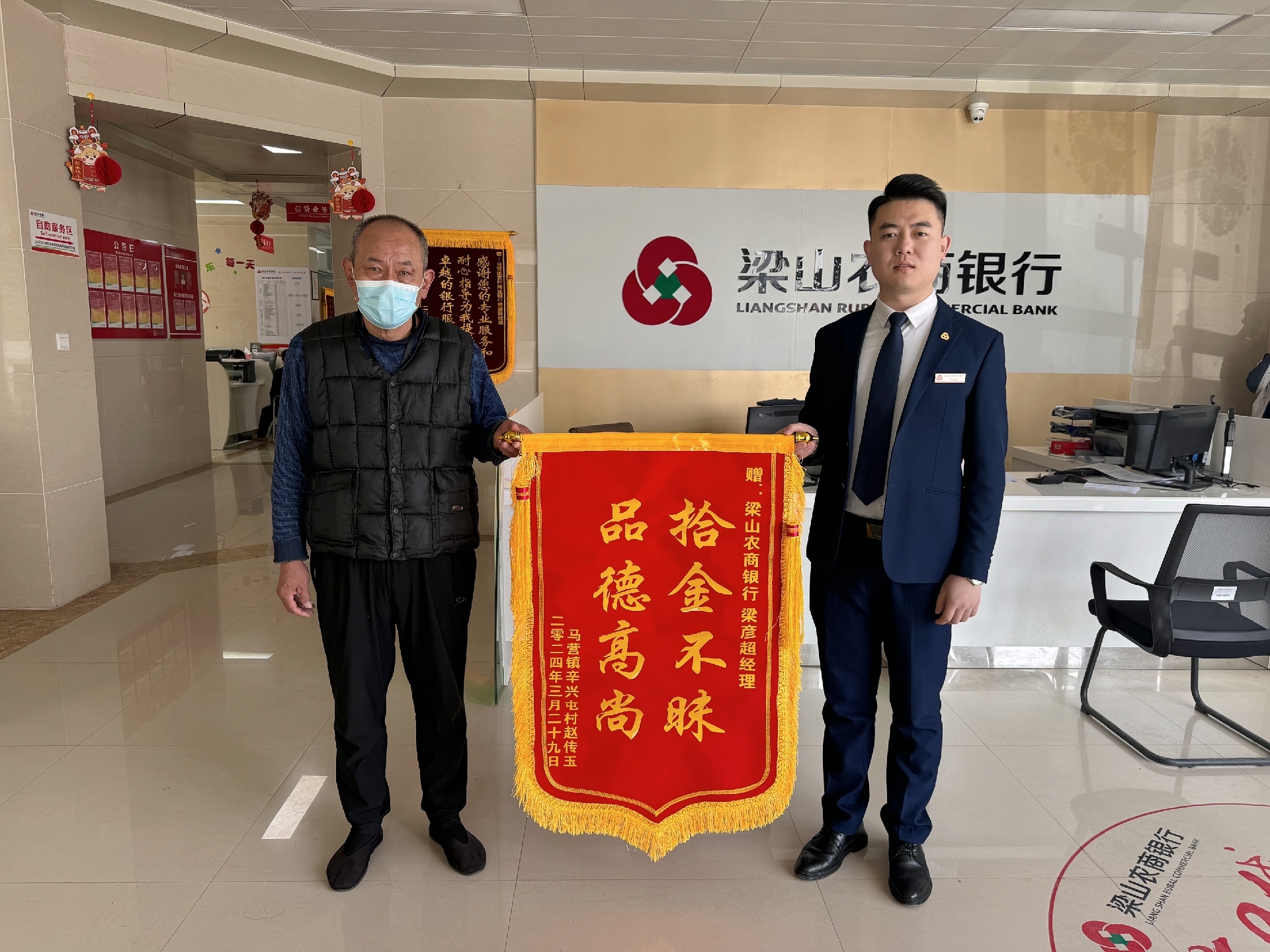 | 梁山农商银行:拾金不昧获锦旗 诚信善举暖人心 |