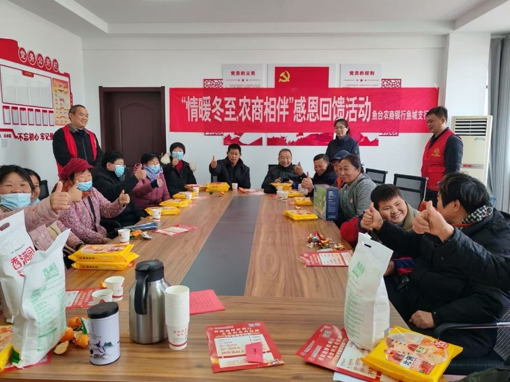 鱼台农商银行开展青年志愿服务系列活动。志愿者们走进街头巷尾,为市民送上新鲜蔬菜与节日礼品,同时普及金融知识;深入社区活动室,举办“情暖冬至·农商相伴”感恩回馈活动,与环卫工人、社区居民围坐交流,送上暖心物资与节日祝福。身着红马甲的青年志愿者们,以实际行动践行社会责任,将农商银行温度传递给每一位群众,用志愿力量诠释金融行业的暖心担当,让这个冬日充满温情。