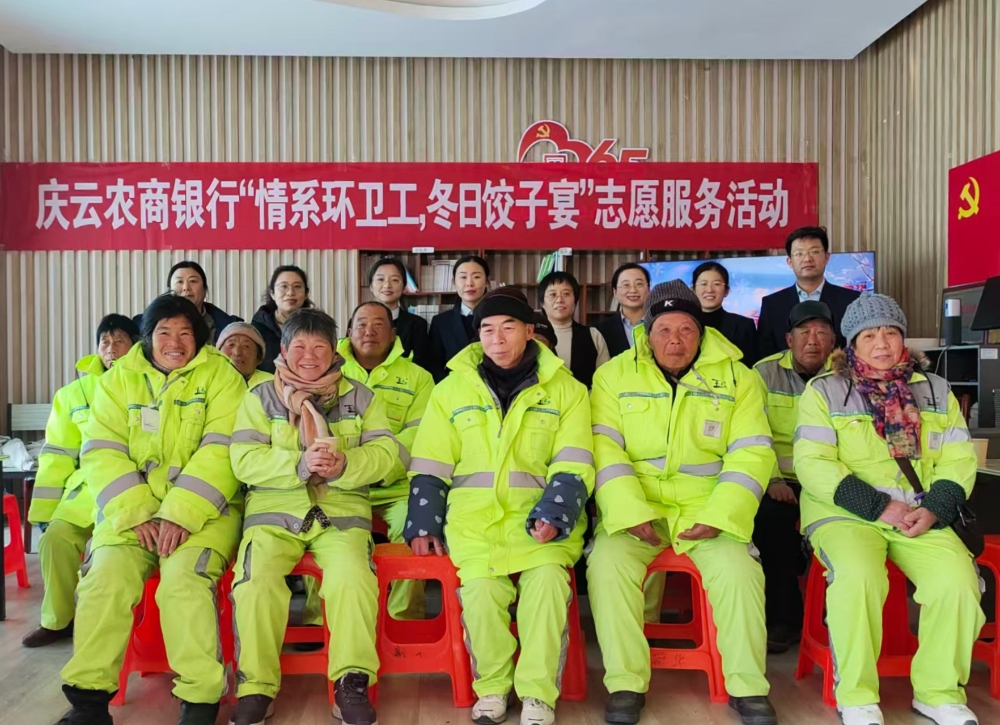 庆云农商银行联合县新华社区开展“情系环卫工冬日饺子宴”志愿服务活动,为一线环卫工人送上冬日温暖。青年志愿服务队成员与环卫工人一起包饺子、品姜茶,并精心准备歌曲、小品等文艺节目,现场气氛活跃温馨;同时设置金融知识问答、反诈课堂等趣味活动,现场答疑解惑。