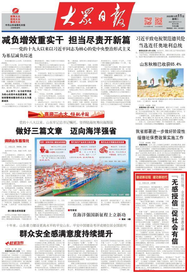 | 大众日报头版:全省农商银行“无感授信”促社会有信 |