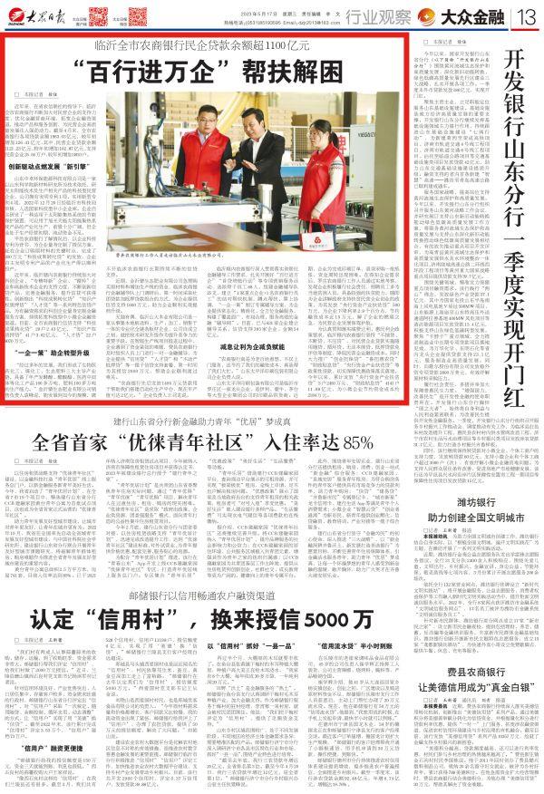 | 大众日报:临沂辖内农商银行民企贷款余额超1100亿元 |