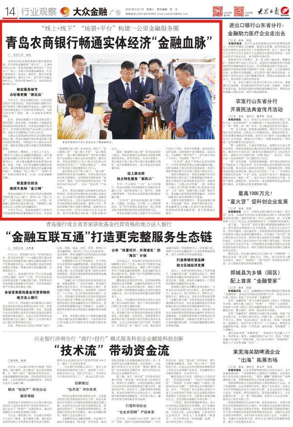| 大众日报:青岛农商银行畅通实体经济“金融血脉” |
